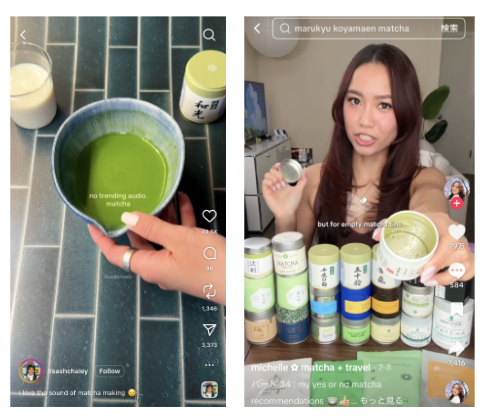 さらにSNS上では、自宅で茶器を用いて抹茶オレを作る動画や、抹茶パウダーを比較する投稿が拡散されており、InstagramやTikTokで数十万件の「いいね」を獲得する投稿も登場しています。